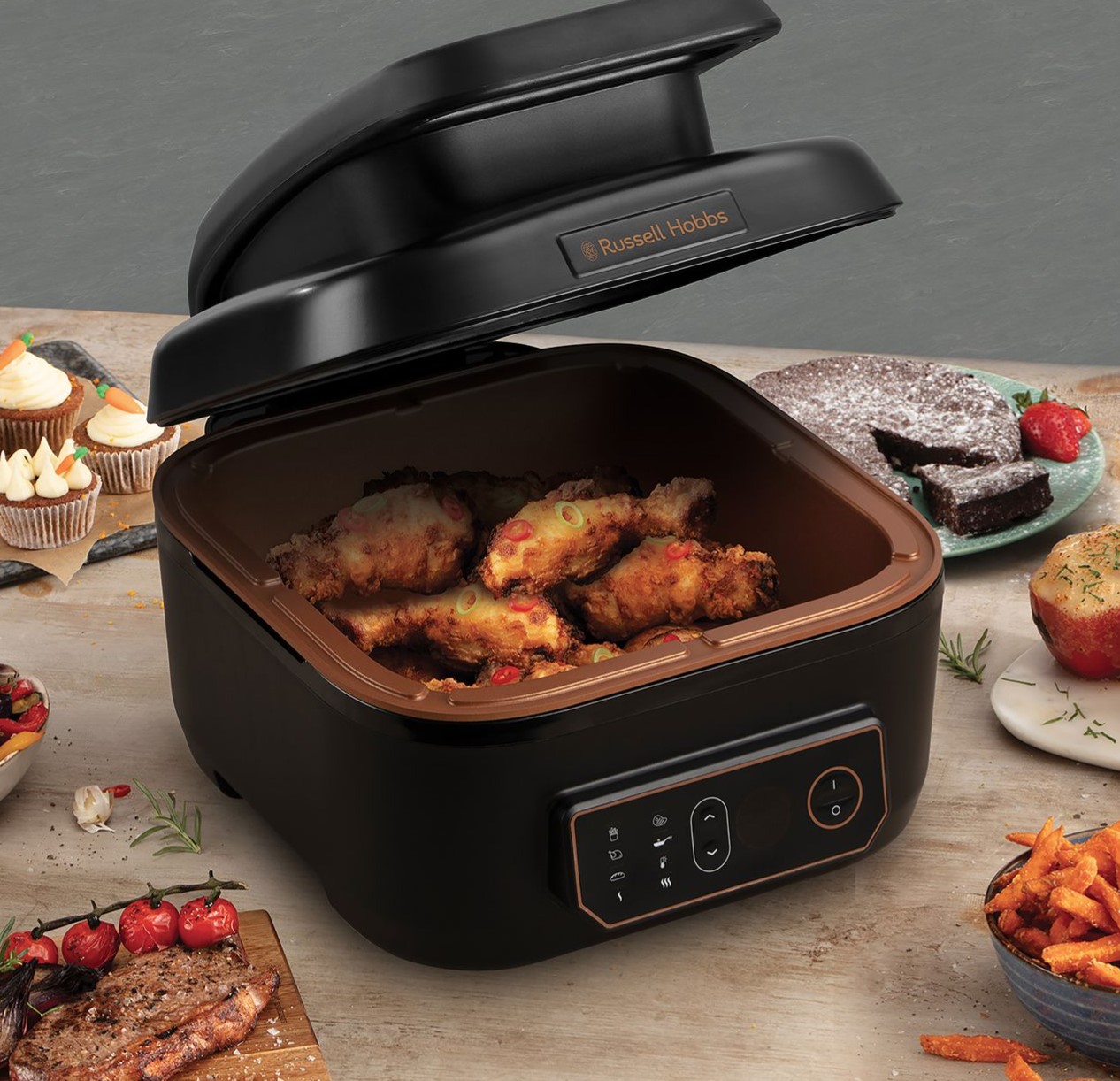 A versatile multi‑cooker combining air frying and grilling with a 5.5 L capacity and multiple cooking modes for healthier, faster cooking with minimal oil.